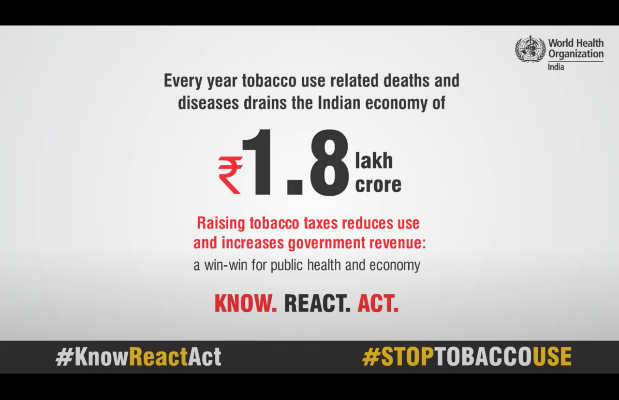 Tobacco use also adversely impacts the economy and a recent WHO report has estimated that the total annual economic costs from all diseases and deaths attributable to tobacco use in India in 2017-18 was a staggering US$ 27.5 billion (approximately Rs 1773 billion).