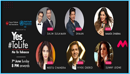 CPAA has a long history of working in tobacco control and with cancer patients. In the past, WHO India has worked with CPAA for health promotion by organizing on-ground events where film and television actors, singers where several celebrities have pledged support to the cause. To continue efforts to educate the public about harms of tobacco use during the early days of the pandemic, an online music concert was streamed on 7 June 2020 focused on the WNTD 2020 theme of creating a ‘Tobacco-free generation’ and highlighting how smoking tobacco weakens the immunity and makes people more vulnerable to COVID-19. Messages were shared by experts, youth influencers and well-known celebrities from the Indian film and music industry — Mr Salim Merchant and Sulaiman Merchant (Salim-Sulaiman), Mr Shantanu Mukherjee (aka Shaan), Mr Kunal Ganjawala, Ms Neha Bhasin, Ms Bhoomi Trivedi, Mr Vishal Dadlani, Ms Mamta Sharma, Ms Jonita Gandhi, Ms Shilpa Rao, Mr Vivek Oberoi, Ms Neetu Chandra and others. All the celebrities and artists contributed pro bono for these campaigns, shot their videos from home with minimum equipment and technical support.