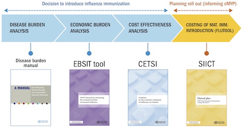 National governments require economic data on the burden of influenza disease, the cost effectiveness of the vaccine, and the projected implementation costs of a maternal influenza immunization programme in their country in order to inform the allocation of limited resources and prioritization of interventions in the health sector. To support decision making and implementation efforts in countries, WHO has developed the Economic Value Chain for Influenza Vaccination.